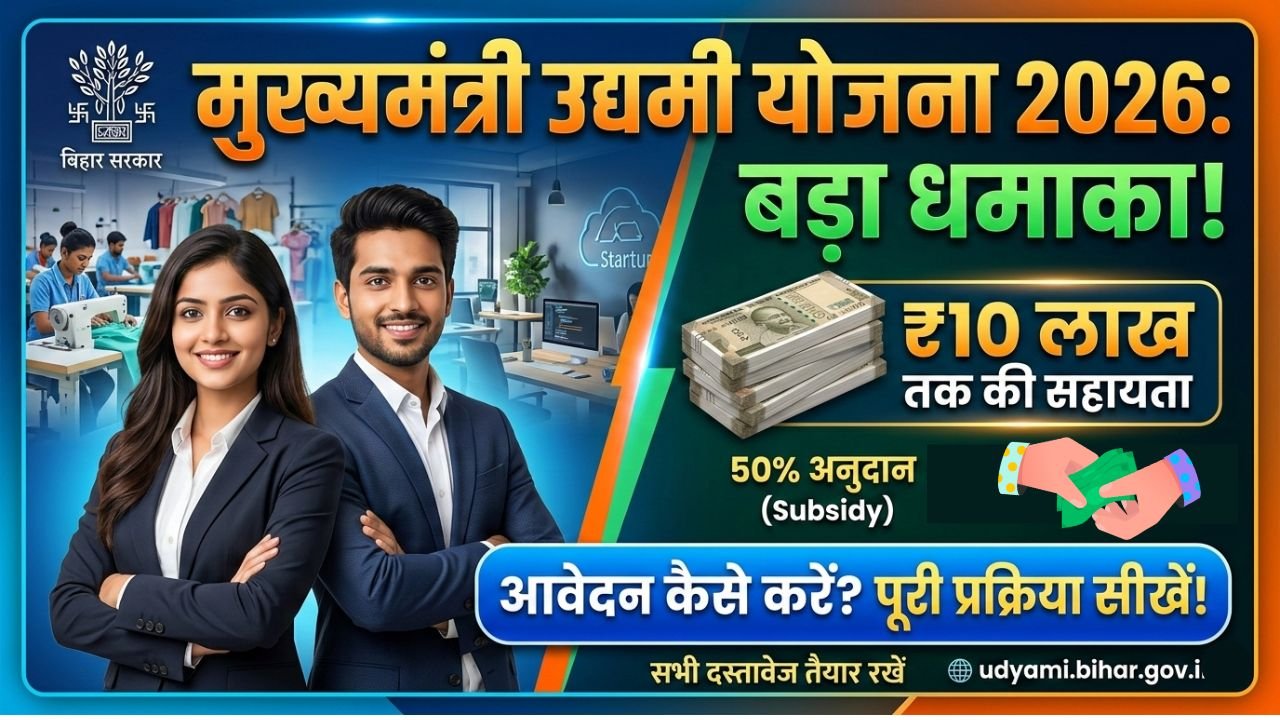 Mukhyamantri Udyami Yojana 2026 : अगर आप बिहार के रहने वाले हैं और बेरोजगार हैं, तो बिहार सरकार ने प्रदेश के युवाओं और महिलाओं को स्वरोजगार से जोड़ने के लिए मुख्यमंत्री उद्यमी योजना 2026 मैं आवेदन शुरू कर दिए हैं, यह योजना जो अपना ख़ुद का बिजनेस शुरू करना चाहते हैं, उनके लिए किसी वरदान … Read more