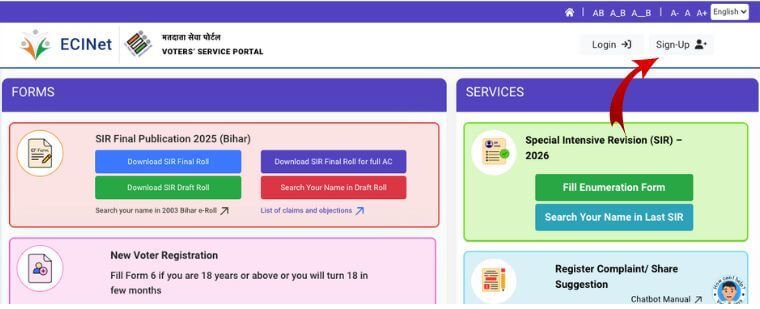 - BLO ने SIR फॉर्म ऑनलाइन सबमिट किया हैं या नहीं सबसे पहले आपको चुनाव आयोग के मतदाता पोर्टल ( voters.eci.gov.in )पर जाना होगा